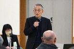 内閣府の幹部から原発事故時の避難計画などについて説明を受ける自民党の県議ら=3月13日、県議会
