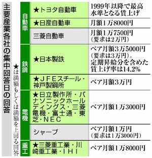 2024年春闘が3月13日、集中回答日を迎えた。トヨタ自動車や日立製作所といった大手が労働組合の賃上げ要求に相次いで満額回答。日本製鉄の回答は要求を上回り、電機、鉄鋼など主要製造業で高い水準の賃金上昇が実現する。歴史的な物価高が続く中、大手で31年ぶりの平均賃上げ率を記録した昨年を上回り...