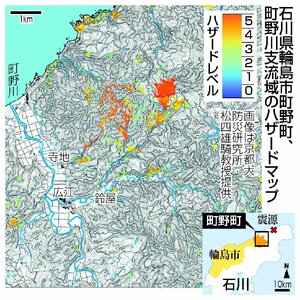 能登半島地震で発生した土砂崩れによって斜面に堆積した土砂が、大雨などで再び崩壊して住宅などに押し寄せる二次災害が懸念されている。京都大防災研究所の松四雄騎教授(水文地形学)は、二次災害発生の危険性は、斜面の勾配や堆積場所に水が集まってくる範囲の広さで決まると...