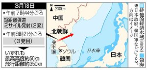 社会 北朝鮮、日本海上に弾道ミサイル発射 2回計3発発射、EEZ外に落下 2024/3/18 9:45 (最終更新: 2024/3/18 12:50) 【ソウル共同】韓国軍合同参謀本部は3月18日、北朝鮮が18日午前7時44分(日本時間同)ごろ〜午前8時22分ごろ、首都平壌付近から短距離弾道ミサイルとみられる複数発を日本海上へ発射したと明らかにした。日本の... 残り553文字(全文:657文字) ここから先を読むには 続きを読む(会員登録する) 続きを読む(ログイン) 新潟日報朝刊を購読していますか? はい いいえ トップページで最新情報を見る 関連ニュース 【速報】妙高市で建物火災 16:13 [クマ目撃情報]村上市、新発田市、五泉市、三条市、加茂市、湯... 13:55 妙高市制20周年で記念給食 赤倉観光ホテルの料理長が監修 9:30 上越市の直江津中が伝統の「がんばり行軍」 大雨による通行止め... 8:00 新潟県高校弁論大会最優秀賞に大橋歩夏さん(燕中等教育学校) ... 7:00 全盲の大学生、訴え実る 新潟市の横断歩道の信号機にさえずり音 5:30 五泉市が介護保険料の還付ミス 計137万円未払いに 11/13 産品の海外展開や人材育成を、群馬で地方創生フォーラム 燕市の... 11/13 孫ら装い、燕市の女性から現金150万円だまし取ったか 詐欺の... 11/13 新潟県立4高校の生徒がオンライン交流 地域探究コースが共通点 11/13 「佐渡島の金山」、21日に韓国独自の労働者追悼式典 韓国外務... 11/13 今後の公共施設、どうする?見附市議会が市民との意見交換会開催... 11/13