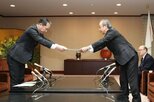 花角英世知事との面談を終え、報道陣の取材に応じる村瀬佳史・資源エネルギー庁長官=3月21日、県庁