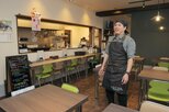 エルマール内にプレオープンした「ひびの食卓」とシェフの小柳太祐さん=上越市西本町3