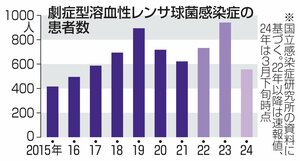 社会 手足の壊死に多臓器不全…「劇症型溶血性レンサ球菌感染症」患者、過去最多ペースで増加 溶連菌の感染症は新学期に流行、手の消毒を国が呼びかけ 2024/4/3 18:00 「溶血性レンサ球菌」(溶連菌)が原因で、手足の急速な壊死(えし)や多臓器不全を引き起こす「劇症型溶血性レンサ球菌感染症」の患者が、過去最多だった2023年を上回るペースで増えている。国立感染症研究所によると、24年は... 残り567文字(全文:676文字) ここから先を読むには 続きを読む(会員登録する) 続きを読む(ログイン) 新潟日報朝刊を購読していますか? はい いいえ トップページで最新情報を見る 関連ニュース 致死率3~7割!溶連菌が引き起こす「劇症型溶血性レンサ球菌感... 2024/1/28 特殊詐欺事件で使用された口座、譲り渡した疑いで村上市の男逮捕 23:00 年金の還付金名目で現金だまし取った疑い、兵庫県の男を逮捕「出... 22:35 [新潟市中学校いす引き問題]第三者委が調査開始 母親「校長、... 22:10 新潟県内でオーロラ観測!北の夜空、赤く染める 村上市で新潟日... 21:50 [新発田市女性殺害事件]被告が異議申し立て…最高裁の上告棄却に 21:45 重川県議の記者暴行「極めて卑劣」新聞労連が抗議声明 21:25 息子など名乗り2300万円だまし取った疑い、東京の男を逮捕 ... 21:15 「油断避けるため」新発田市、11日の緊急銃猟を報道発表せず ... 20:50 小千谷の養鯉池、鯉食べるクマを目撃 20:17 鉄道の信号設定ミス、全国10事業者15駅で判明 県内ではJR... 20:00 信濃川の大河津分水路改修の促進要望 新潟市長ら3市長が国交省... 20:00