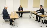 タブレット端末を使い町職員とやりとりしながら手続きを進める「書かない窓口」=阿賀町役場