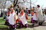 高田城址公園観桜会で5年ぶりに披露された時代行列=4月7日、上越市