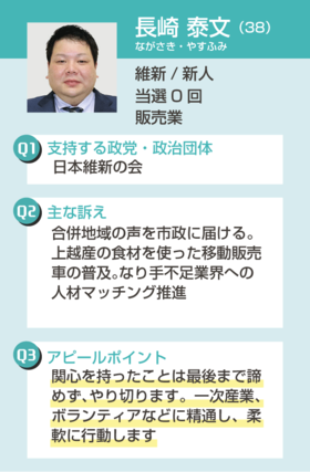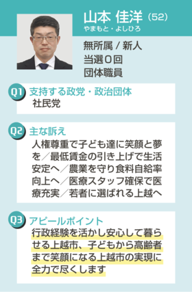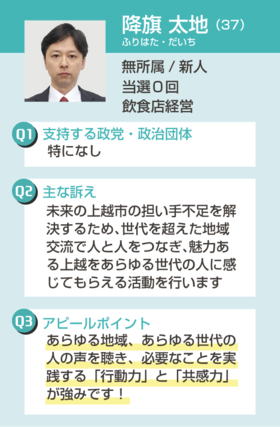 新潟県の上越市議会議員選挙(上越市議選)が4月14日告示されました。定数32に対して39人が立候補しました。投開票日は4月21日です。