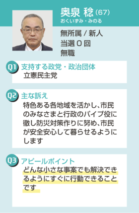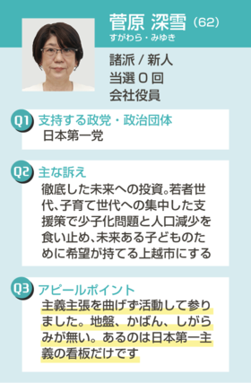 ※各候補の訴えは画像を切り替えると表示されます。(※掲載は届け出順)