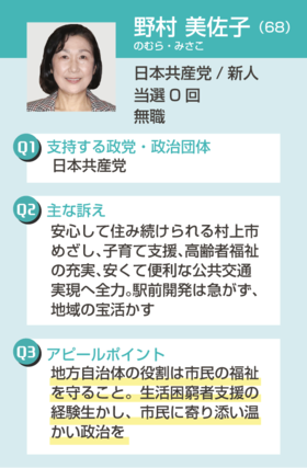 ◇村上市議選立候補者(届け出順・定数20-21)