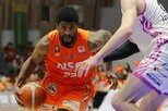 新潟-福島 第2クオーター、攻め込むデイビス=アオーレ長岡