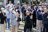 上越市議選の出陣式で候補の訴えに耳を傾ける聴衆=4月14日、上越市高田地区