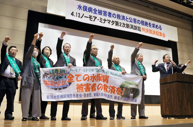 原告は新潟水俣病阿賀野患者会の会員で、新潟市や阿賀野市などに住む40〜90代の男女。九州の水俣病被害者とも連携し、水俣病問題の全面解決を掲げました。