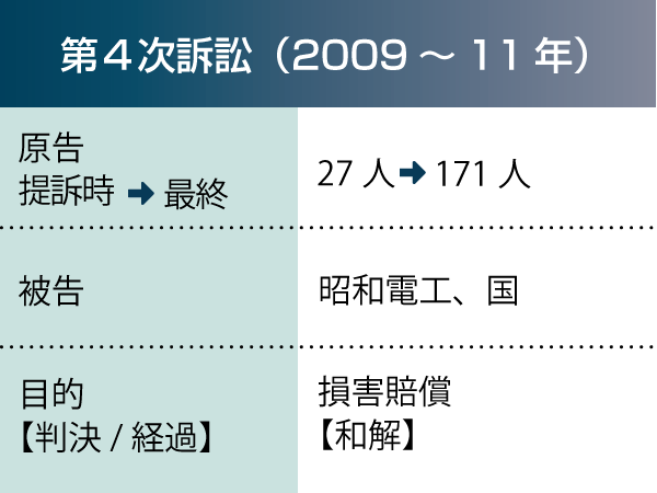 これを機に、国・昭和電工と原告の間で問題解決に向けた話し合いが行われ、2011年3月、和解が成立しました。