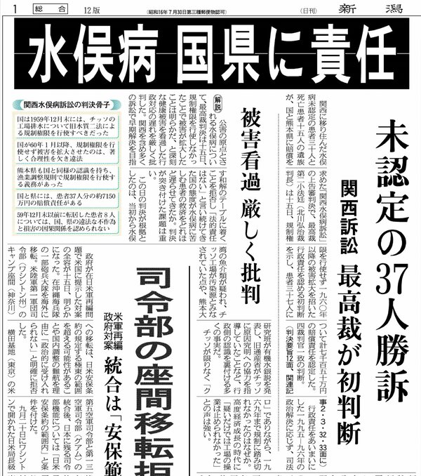 ◆新潟水俣病の訴訟で初めて県が被告に、最高裁まで争う