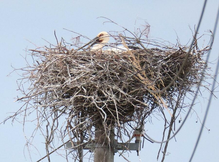 観察を続けている市民が5月6日、つがいがこれまでにない行動をするのを見て、コウノトリの郷公園に動画を送信した。親鳥がエサを吐き戻し、ひなに与えるしぐさを動画で確認した専門家が、ふ化したと判断した。