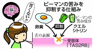 社会 ピーマン嫌いは卵で克服!?キユーピーが苦み感じる仕組み解明 苦み成分に卵黄混ぜると認識を抑制「調理法や商品に生かしたい」 2024/5/13 18:00 ピーマン嫌いが卵で解決できるかもしれない。キユーピーはピーマンの苦みを感じる仕組みを解明し、卵黄がそれを抑制する可能性があるとの研究をまとめた。子どもの苦手な野菜の代表格という汚名返上に期待がかかる。 舌には... 残り366文字(全文:471文字) ここから先を読むには 続きを読む(会員登録する) 続きを読む(ログイン) 新潟日報朝刊を購読していますか? はい いいえ トップページで最新情報を見る 関連ニュース [不審者情報]手でハートマークをつくり下校中の児童を追いかけ... 11:35 【動画あり】三条市清掃センターで火災 10:00 魚沼市営3スキー場、2027年度の指定管理終了後も支援は当面... 10:00 米坂線復旧「何とかして」…新発田で市民団体が署名活動 年内提... 7:30 トキエア、ついに採算目標70%超え!8・9月の利用率 認知度... 5:00 特殊詐欺事件で使用された口座、譲り渡した疑いで村上市の男逮捕 11/12 年金の還付金名目で現金だまし取った疑い、兵庫県の男を逮捕「出... 11/12 [新潟市中学校いす引き問題]第三者委が調査開始 母親「校長、... 11/12 新潟県内でオーロラ観測!北の夜空、赤く染める 村上市で新潟日... 11/12 [新発田市女性殺害事件]被告が異議申し立て…最高裁の上告棄却に 11/12 重川県議の記者暴行「極めて卑劣」新聞労連が抗議声明 11/12 息子など名乗り2300万円だまし取った疑い、東京の男を逮捕 ... 11/12