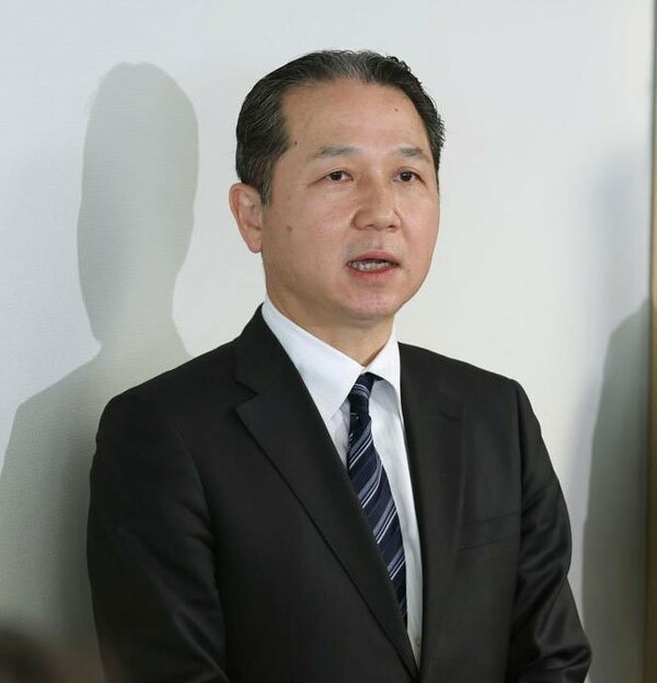 花角英世新潟県知事との面談を終え、報道陣の取材に応じる村瀬佳史・資源エネルギー庁長官=3月21日、県庁