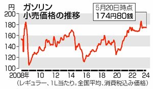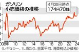 経済 ガソリン価格4週ぶり値上がり、全国平均174円80銭 新潟県は30銭高い172円40銭 2024/5/26 7:00 経済産業省が5月22日発表した20日時点のレギュラーガソリン1リットル当たりの全国平均小売価格は、前週調査と比べて30銭高い174円80銭だった。4週ぶりに値上がりした。都道府県別では25道府県で上昇し、13都県で... 残り265文字(全文:373文字) ここから先を読むには 続きを読む(会員登録する) 続きを読む(ログイン) 新潟日報朝刊を購読していますか? はい いいえ トップページで最新情報を見る 関連ニュース ガソリン価格2週ぶり値下がり、全国平均174円70銭 新潟県... 2024/5/3 長岡花火の経済効果は約110億円!満足度97%の一方、課題も... 1/22 【動画あり】「AIてっと君」とお話ししたよ!新潟日報生成AI... 1/22 小国和紙で“まるで風呂敷”なPCケース♪長岡造形大生が協力、... 1/22 燕振興工業(燕市)壁紙制作事業に参入 道路標識、屋外看板…既... 1/22 お土産に「佐渡牛乳ガレット」いかが?佐渡乳業の牛乳使用、パッ... 1/22 異業種連携で新会社、五泉市でネット事業 NCT・越後天然ガス... 1/22 トランプ関税影響これからか…価格転嫁は「横にらみ」、AIRM... 1/22 積雪地域に対応!地面に垂直設置の太陽光発電設備、燕市で発電開... 1/21 生成AIで地域課題解決へ、新潟日報社と信濃毎日新聞社(長野市... 1/21