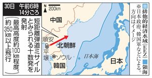 社会 北朝鮮が短距離弾道ミサイル、異例の10発以上発射か 日本のEEZ外に落下とみられ、被害確認されず 2024/5/30 11:20 (最終更新: 2024/5/30 11:25) 【ソウル共同=富樫顕大】韓国軍合同参謀本部は5月30日、北朝鮮が同日午前6時14分ごろ(日本時間同)、首都平壌の順安付近から日本海上へ短距離弾道ミサイルと推定される十数発を発射したと明らかにした。日本の防衛省は少なくとも... 残り659文字(全文:770文字) ここから先を読むには 続きを読む(会員登録する) 続きを読む(ログイン) 新潟日報朝刊を購読していますか? はい いいえ トップページで最新情報を見る 関連ニュース 5月27日発射の北朝鮮偵察衛星は失敗 空中で爆発、エンジン原... 2024/5/28 北朝鮮が弾道ミサイル発射、沖縄県にJアラートも日本に飛来せず... 2024/5/28 北朝鮮が弾道ミサイル発射、EEZへの飛来は確認されず、被害報告なし 2024/5/17 第2回日朝首脳会談から5月22日で20年、「最重要課題」でも... 2024/5/22 特殊詐欺事件で使用された口座、譲り渡した疑いで村上市の男逮捕 11/12 年金の還付金名目で現金だまし取った疑い、兵庫県の男を逮捕「出... 11/12 [新潟市中学校いす引き問題]第三者委が調査開始 母親「校長、... 11/12 新潟県内でオーロラ観測!北の夜空、赤く染める 村上市で新潟日... 11/12 [新発田市女性殺害事件]被告が異議申し立て…最高裁の上告棄却に 11/12 重川県議の記者暴行「極めて卑劣」新聞労連が抗議声明 11/12 息子など名乗り2300万円だまし取った疑い、東京の男を逮捕 ... 11/12 「油断避けるため」新発田市、11日の緊急銃猟を報道発表せず ... 11/12
