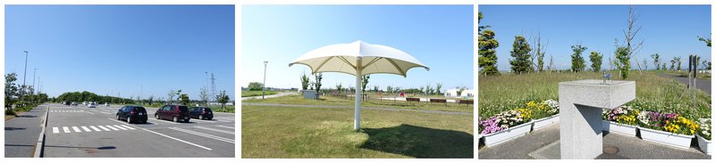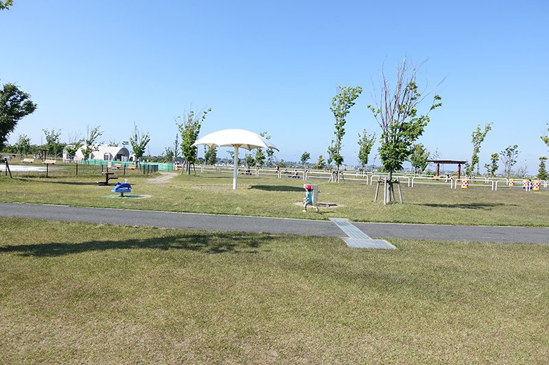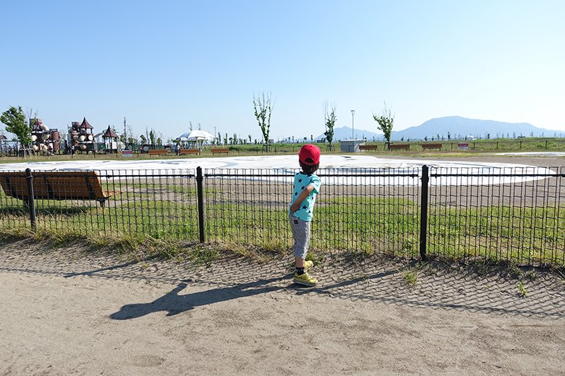 助手:新しい公園なので、遊具や施設がきれいで嬉しい。ミストシャワーまであって驚きました。ベンチだけでなく、大きなパラソルも設置されているので、レジャーシートや簡易テントなどを持っていくと、快適に過ごせそう。