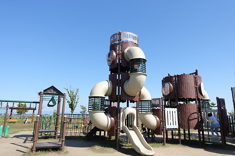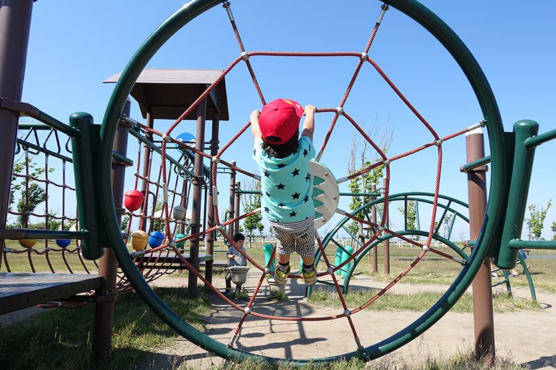 さらに公園の奥へと進んでいくと、大型遊具を発見!これはオープン時にはありませんでした。カートだけでも楽しすぎるのに、こんなに魅力的な大型遊具まで作ってしまうなんて。なんて欲張りな公園なんでしょうか。