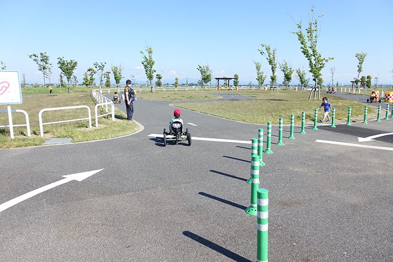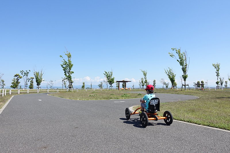 助手:歩くのはちょっと大変なので...車で行きますね。今回の公園はペダルゴーカートがあるそうですよ。