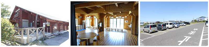 休憩場所:休憩所(ログハウス)、ベンチ、東屋など