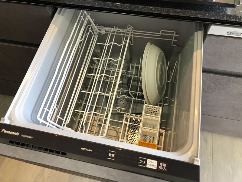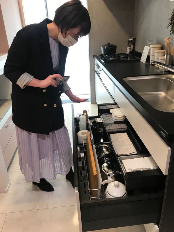 とはいえ、洗いものをするたびに洗剤で手がガサガサになるのよね~、だから油っぽい夕飯の後片付けはなるべく夫にお願いしちゃうよね~と目線を落とすと、大容量の深型食器洗い乾燥機!何これ、大きなお鍋も、麦茶を作るヤカンもスポッと入る! 家族4~5人分の食器など余裕!でも、水道代は...。そこでショールームをくまなく案内してくれていた岩田梨沙さんからまたまた衝撃の一言「食洗機の使用は節水効果で年間5万円以上お得になるそうですよ」が出ました。そうなんですね!正直、逆かと思っていました...(汗)。