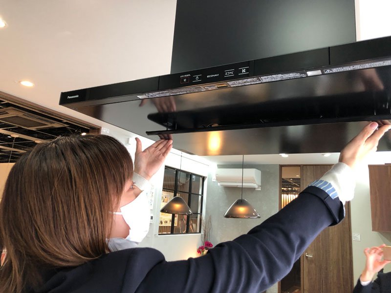 ふと見上げると、すぐそこには「全自動お掃除ファンつきほっとくリーンフード」。こちらの換気扇は、10年間放っておいても大丈夫な構造になっているため、すぐ手の届くプレートさえ洗ってきれいにしておけば、中のファンは油がこびり付きにくく、10年後に掃除をすればよいだけだそうです。ちなみにプレートは先ほどの食器洗い乾燥機に入れられます。これまで、年に一度は台所によじ登って大掃除をしていた今までの私にお礼とさよならを言いたい! これなら唐揚げも天ぷらも(自分に)遠慮しないでガンガン子どもたちに作ってやれるぞ〜!