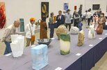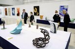 第78回新潟県美術展覧会(県展・新潟日報社など主催)の佐渡展が6月5日、佐渡市窪田のヒルトップアリーナ佐渡で2年ぶりに開幕した。県展賞に選ばれた佐渡市四日町の臼木敦さんの作品をはじめ佐渡市内からの入賞・入選作品を含む379点が展示され、訪れた市民は写真を撮ったり間近で作品を眺めたりしていた。
