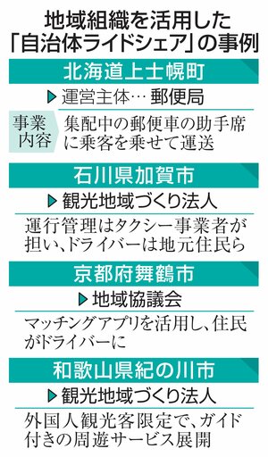 社会 過疎地向け「自治体ライドシェア」、地域の郵便局や農協も担い手に 政府、補助金充実で後押しへ 2024/6/9 9:30 政府は、過疎地の住民や観光客の移動手段確保に向けた輸送サービスの担い手として、郵便局や農協、観光地域づくり法人(DMO)といった地域組織の活用を本格化する方針を固めた。岸田文雄首相が近く関係閣僚会議で... 残り568文字(全文:669文字) ここから先を読むには 続きを読む(会員登録する) 続きを読む(ログイン) 新潟日報朝刊を購読していますか? はい いいえ トップページで最新情報を見る 関連ニュース 新潟佐渡市が「佐渡版ライドシェア」実証調査へ、観光シーズンの... 2024/6/7 日本版ライドシェア「積極的に考えていきたい」、新潟長岡市の磯... 2024/4/18 「日本版ライドシェア」新潟県でも!?県内の一部都市で導入検討... 2024/4/10 [鉄道運行情報]JR上越線・水上ー越後中里の上下線で運転見合... 12:45 [熊目撃情報]魚沼市(12月17日) 11:20 高温・乾燥に強いコメ開発へ…新潟大学が2026年度新施設整備... 10:30 クラレ(東京)が障害がある社員の作業所を胎内市の事務所敷地に... 9:00 県民の暮らし守るため全力! 新潟市中央区で新潟県警の永年勤続... 8:00 「急」はダメ!ふんわり運転をしよう♪新潟江南署が交通事故防止... 6:00 長岡市の横断歩道で60代男性が軽乗用車にはねられ重体、運転し... 12/16 燕市の地下水から基準値超の鉛…周辺井戸では「検出されず」 新... 12/16 佐渡金山の保全状況報告書を日本政府がユネスコに提出、2026... 12/16