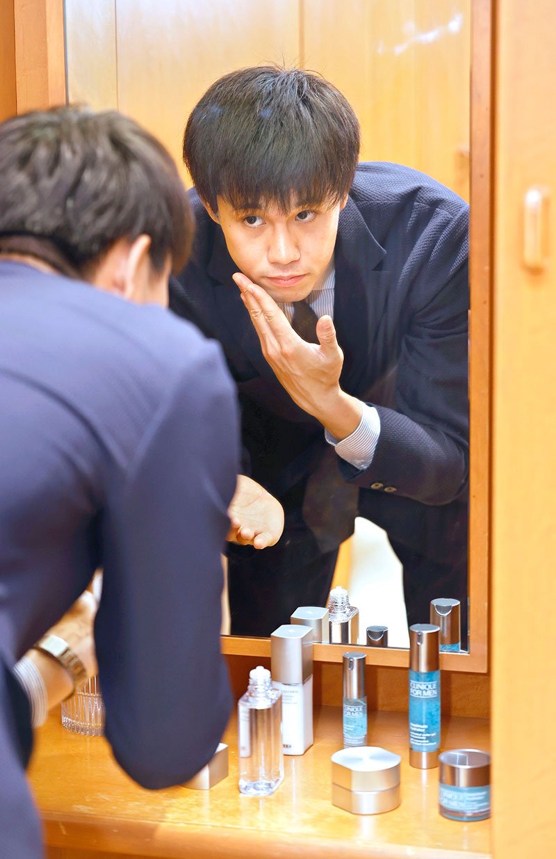 そんな折、取材先の男性の肌がきれいなのに目が行った。そういえば、最近はドラッグストアや百貨店で、男性用のスキンケア用品をよく見かける。