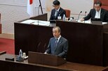 会見で記者からの質疑に回答する田村正幸町長=6月12日、湯沢町神立の湯沢町役場
