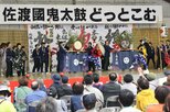 少子化で2023年まで団員が不在だった新潟県佐渡市両津夷の「夷七ノ丁少年鬼組」に、1年間で両津地区内外から7人のメンバーが集まった。6月16日に地元の神社で開かれる夷諏訪神社例大祭が、新体制のお披露目の舞台。子どもたちも指導者も、「七ノ丁の鬼」の5年ぶりの復活に向け、練習に熱が入っている。