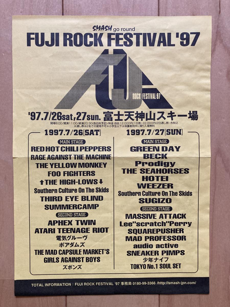 M:(黄色いチラシを出して)参加アーティストを見て即決しました。プロディジー、エイフェックス・ツイン、電気グルーヴ…。このラインアップで、行かないわけない。当時27歳かな。70年の早生まれなんで。