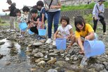 総合学習で新潟県南魚沼市を流れる魚野川を調べている石打小学校(南魚沼市石打)の4年生17人は7月1日、魚野川にイワナの稚魚を放流した。子どもたちは放流を通して、川をきれいに守っていくことの大切さを学んだ。