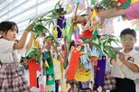 6月27日に小学校で行われた飾り付けには、4〜6年生20人が参加。菅谷支部のメンバーらと協力しながら4〜6年生約120人が書いた短冊を4本の竹に取り付けた。