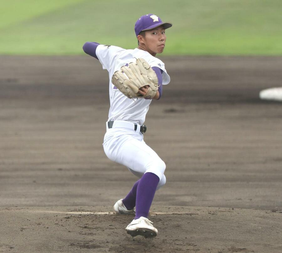 長岡大手-東京学館 東京学館の先発、朝妻渚斗=長岡市悠久山球場