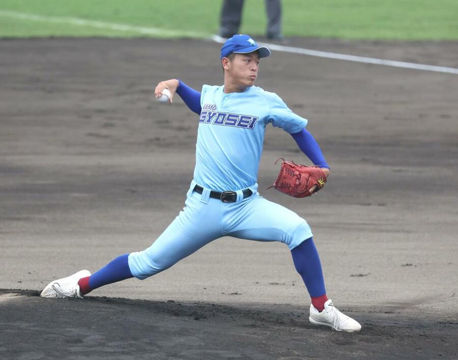 開志学園-十日町 開志学園の先発、松澤煌=新発田市五十公野運動公園野球場