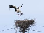 巣から飛び立ったコウノトリ=7月16日、上越市