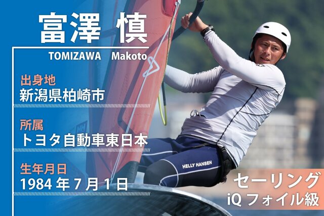 セーリングの男子「iQフォイル級」に富澤慎選手(トヨタ自動車東日本・柏崎市出身)が5大会連続で出場する。5回目の五輪は、夏・冬を通じて新潟県出身選手で歴代最多となる。