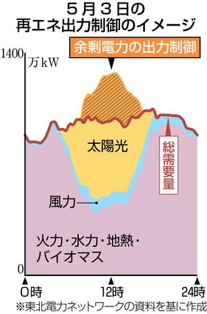 東北電ネット管内(新潟県と東北6県)では太陽光22回(前年同期11回)、風力19回(前年同期9回)だった。