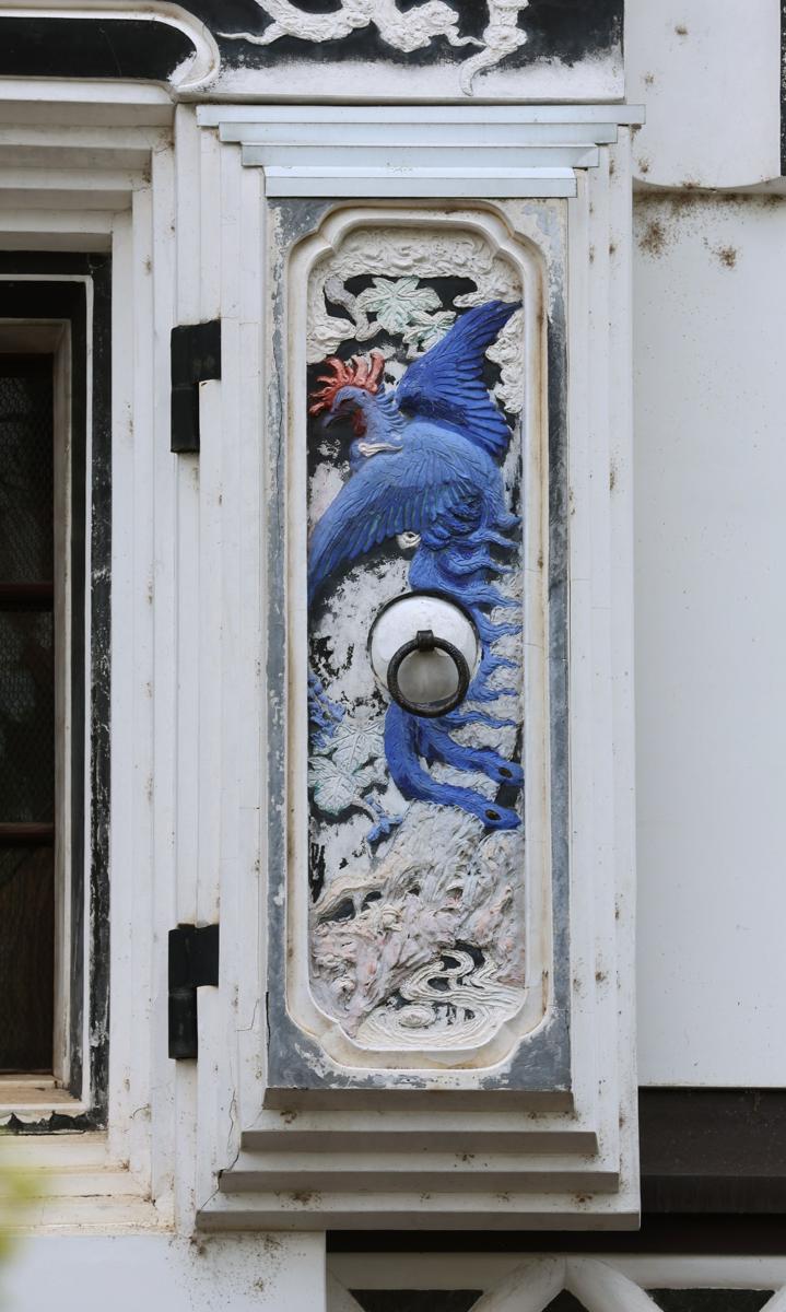 サフラン酒本舗といえば鏝絵蔵が有名だ。普通なら建物の一部に施す漆喰(しっくい)装飾の鏝絵を土蔵の全体に展開した「見せるための蔵」。屋敷の正面に位置し、仁太郎の館を象徴する鏝絵蔵は2006年、歴史的建造物が数多く残る摂田屋地区で初めて国の登録有形文化財に指定された。