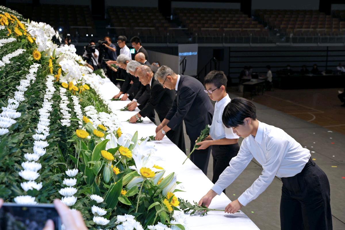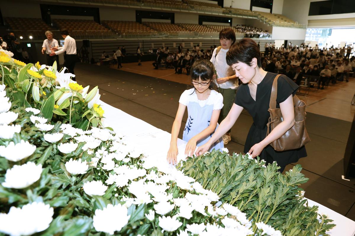 長岡市のアオーレ長岡では8月1日午前9時、市主催の平和祈念式典が開かれた。長岡空襲の犠牲者遺族や小中学生ら約780人が出席し、不戦と平和への誓いを新たにした。