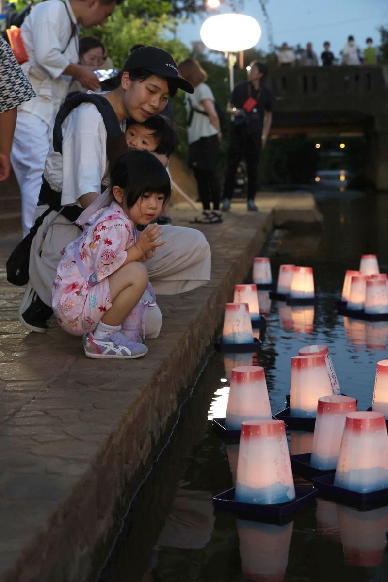 長岡空襲の犠牲者を慰霊し、恒久平和を願う「柿川灯籠(とうろう)流し」が、長岡市の市街地を流れる柿川で行われた。冥福の祈りが込められた灯籠が午後6時半ごろから次々と流され、ほのかな明かりが川面に揺れた。