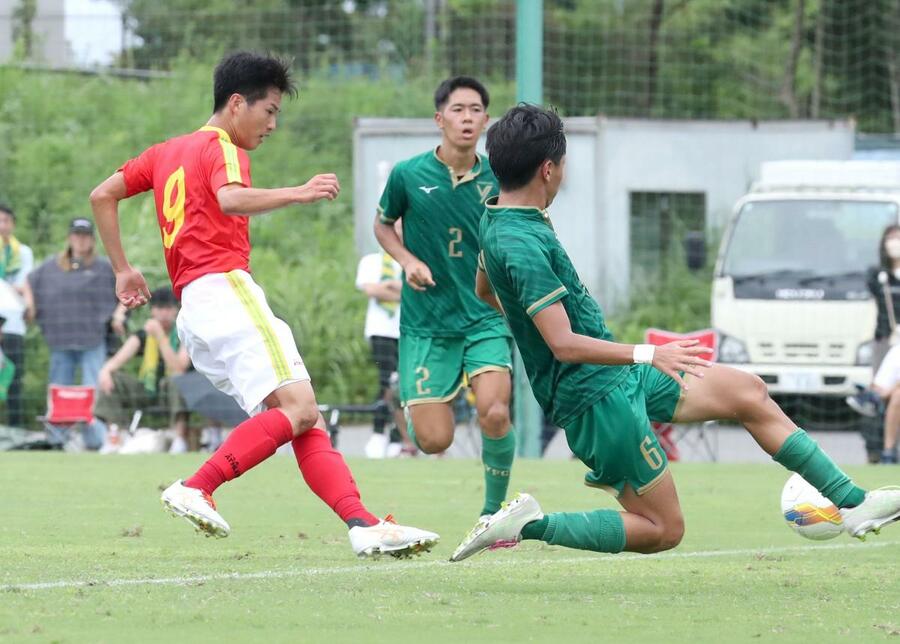 [インターハイ7月27日]サッカー男子の帝京長岡は後半一気に5点を奪い、初戦を突破した。口火を切ったのは、チーム伝統のエースナンバー「14」を背負うFW安野匠。先制点を含む2得点と躍動したストライカーは「先制が欲しい状況で決められて良かった」と笑顔がはじけた。