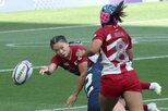 東京五輪に出場したときは、無観客試合だったために直接応援することはかなわなかった。入場する原選手を見て「感無量だった」と母の麻緒さん(49)。「外から走り込む彼女のスタイルでトライを奪って、チームを勢いづけてほしい」と期待した。