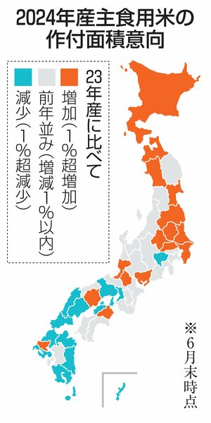 新潟県内34の地域農業再生協議会(再生協)別でみると、増やすと回答したのが4月末時点と比べ2増え11となった。前年並みは20、減少は3。新潟県は24年産の目標作付面積を9万9900ヘクタールとしている。県農産園芸課の渡部浩課長は「需給環境に見合う作付面積になんとか落ち...