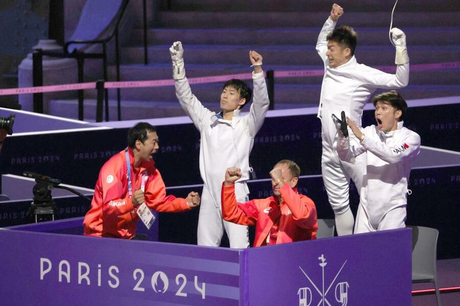 日本は古俣選手のほか、エペ個人金メダルの加納虹輝選手(26)=JAL=、見延和靖選手(37)=ネクサス=、山田優選手(30)=山一商事=の布陣で臨んだ。