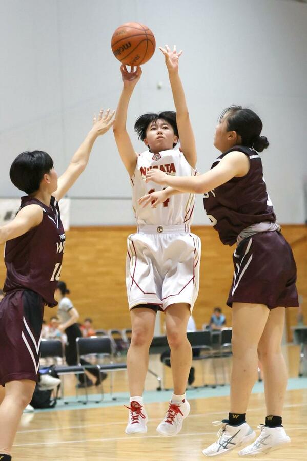[インターハイ8月4日]バスケットボール女子の新潟中央は、長崎西を78-66で下し、初戦を飾った。3年の大﨑優杏は「最後まで粘り強い守備ができなかった」と反省を忘れなかった。