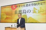 「佐渡島(さど)の金山「相川鶴子金銀山」と「西三川砂金山」の二つの鉱山遺跡で構成。17世紀には世界最大級の金の産出量を誇った。金の採取から精錬までを手工業で行っていた時代の遺構が残っているのは、世界的に例が少ないとされる。」の世界文化遺産1975年に発効した世界遺産条約に基づき、歴史的建造物や遺跡を対象にユネスコが人類共通の財産として登録する。国内では姫路城などが登録されている。世界遺産にはほかに、貴重な生態系などの自然遺産と、文化と自然の要素を併せ持つ複合遺産がある。登録の可否は世界遺産委員会が決める。登録決定から1週間となった8月3、4の両日、新潟県佐渡市の佐渡汽船ターミナルで来島者の出迎えイベントが行われた。観光関係者らが横断幕を掲げて歓迎。記念品を渡しながら「ようこそ佐渡へ」と声をかけた。